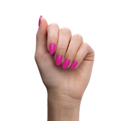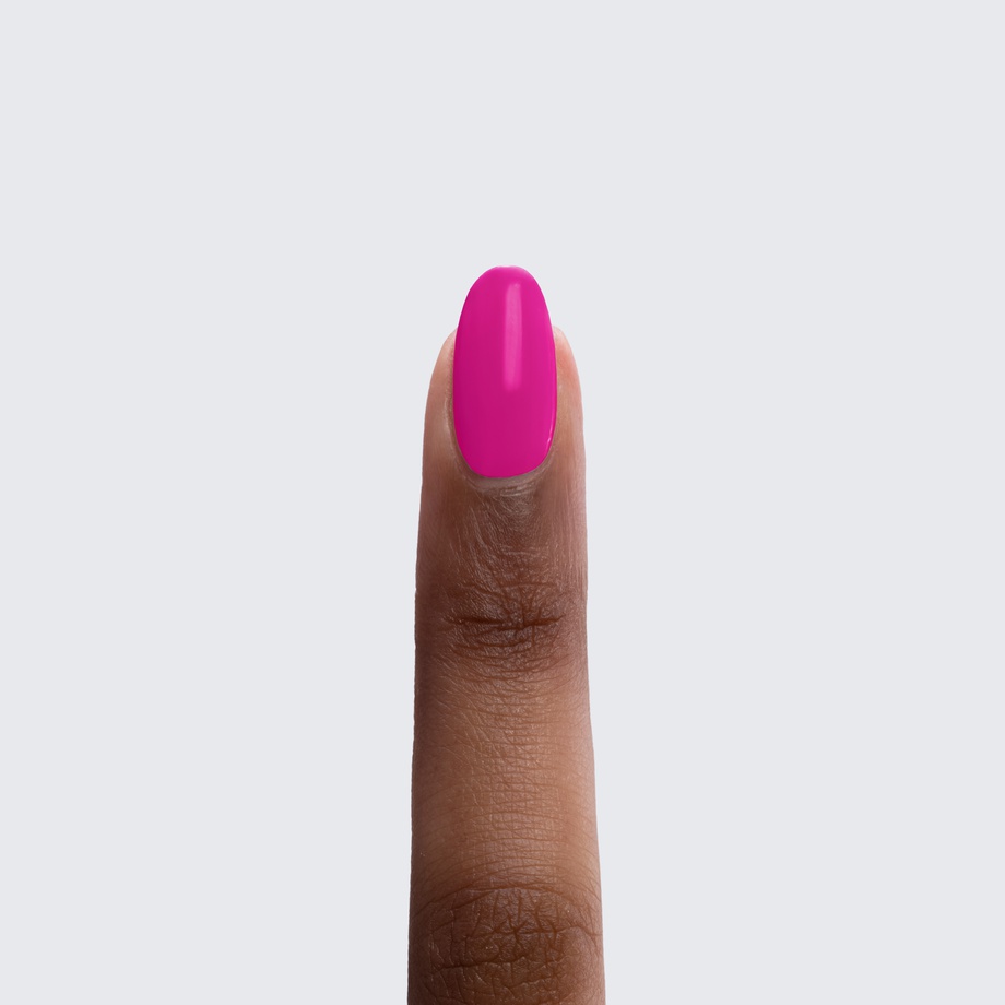 Neon barbie pink. Semi-gloss. Bright. Opaque. Cool undertone.